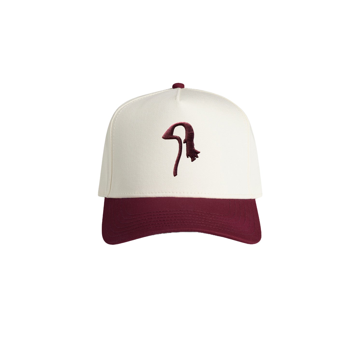 Finished in a burgundy and bone two tone color way with burgundy embroidered artwork, it’s more than just a hat, it’s a statement. Whether you're on the field, on the road, or just out and about, this cap keeps it classic while showing off a bold edge.